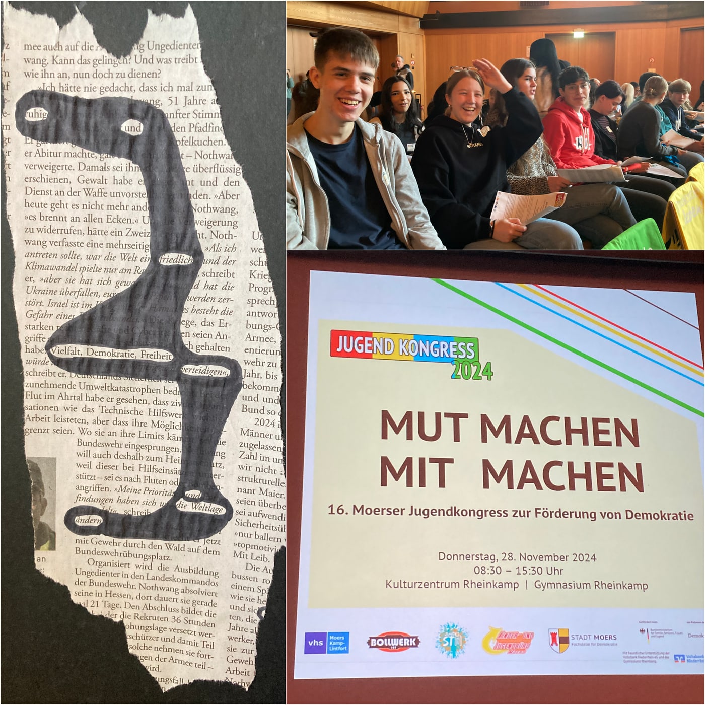 Am 28.November trafen sich über 200 Schüler:innen der weiterführenden Schulen aus Moers, um für Demokratie einzustehen, sich in Workshops auszutauschen, zu diskutieren und auf kreativen Wegen „Mut machen und Mit machen“ auszuprobieren.