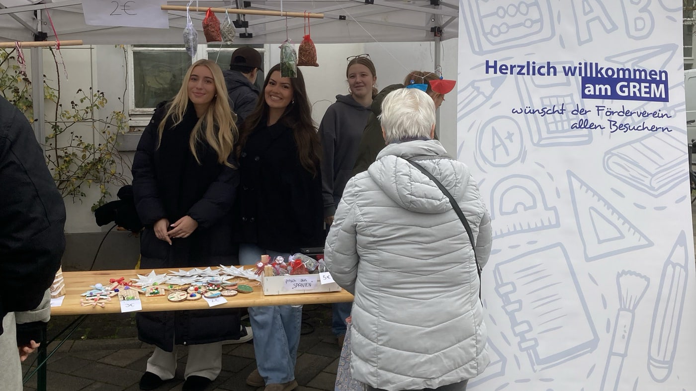 Mit einem kunterbunten Stand voller selbst gebastelter Weihnachtsdekoration und leckeren Waffeln bereicherte unsere Q1 das adventliche Treiben rund ums Moerser Schloss. Der Erlös fließt in die Abikasse. Schön war’s!