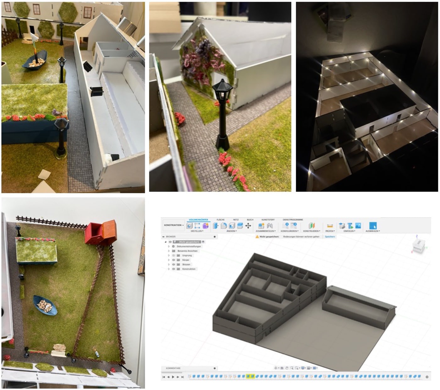 Die Aufgabe des dritten Spieltages bestand darin, die Bedürfnisse und Wünsche der drei aktuellen Personas umzusetzen. Die Kernaspekte umfassten Gaming-Angebote, Möglichkeiten zum Theaterspielen und einen MakerSpace. Da die erste Etage bereits vollständig verplant war, kam eine weitere hinzu. Um die zweite Etage sinnvoll zu gestalten, musste ich auch die Bedürfnisse zukünftiger Personas berücksichtigen, damit für alle Angebote ausreichend Platz vorhanden ist. Bereits in der letzten Runde hatte ich Ideen zu möglichen Veranstaltungen im Bürgerzentrum entwickelt, die ich nun konkretisierte, bündelte und weiter ausarbeitete. Neben den vorgegebenen Aufgaben verfolgte ich weiterhin mein Ziel, die 17 Ziele der UN sowie das Prinzip der Donut Economy zu berücksichtigen. Zudem wurde in dieser Runde sowohl die obere Etage als auch das Theaterhaus beleuchtet. In der oberen Etage verlegte ich eine ein Meter lange, solarbetriebene Lichterkette, während das Theaterhaus mit drei Solarlampen ausgestattet wurde, die an der Decke angebracht sind.