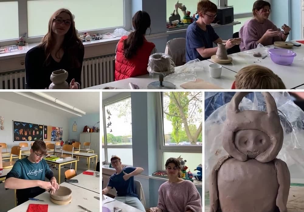 Am Freitag, dem 5.5., wurde wieder mit Frau Bühning getöpfert. Wir haben uns an kleinen Figuren, Bechern und Schalen probiert. Letztere können dank Brennen und Glasieren sogar als Geschirr verwendet werden. Das Angebot fand nach der 6. Stunde statt und hatte ein offenes Ende. Mit selbstgebackenem Kuchen und viel Geduld sowie Wissen von Frau Bühning sind am Ende tolle Kunstwerke entstanden.